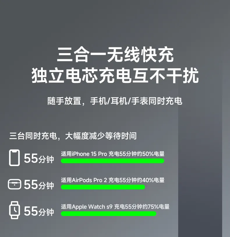 Specifications of Three-in-One Wireless Charger Night Light Magnetic Absorption iPhone 14 15 Charging Base Apple Watch S9 Stand AirPods Desktop